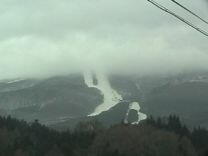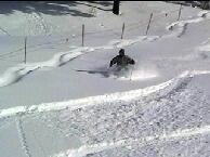 ・天気が良かった頃の猪苗代スキー場に間に合うように出発。家付近は晴れていたけど郡山市内で雨がちらついてきてかなりブル ー。それでもスキー場に近づくにつれ雪に変わってきてひと安心。駐車場に着いてゲレンデに 出た頃には晴れていました。リフト運行開始時刻には間に合わなかったけど幸いミネロ第4 (赤埴)リフトがまだ動かない。クワッドのコースはやや重めの新雪が10〜20cm積もっていた ので足慣らしにチョイパウダーフラットを2本。人が少なかったので念願のパウダーエイト(イン チキ しかも一人で)を描くことが出来ました。 9時ころ、そろそろミネロ第4が動くかなとおもっていたらちょうど動き出したけど残念ながらリフ トに乗ったのは2番目。1人目の方がひろーい赤埴の斜面を大回りしちゃったのでリフト沿いの パウダーを3本、中央側斜面のパウダーを1本しっかりいただきました。深いところで40cmく らい。先週と比べると雪が相当重くパウダーとは言えないかも。でも浮遊感はしっかりあったし 人が少なくいっぱい楽しめました。先週が良すぎたので比較対照外? から雪へ。コブラインは少し出来ましたが視界が悪く滑れませ−ん!!今日は午前中で終了 です。 ![]() ![]() ![]() ![]() ![]() ![]()