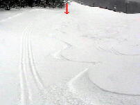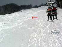 ・赤埴リフト沿いパウダーを滑った跡 しつこいようですが赤矢印