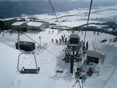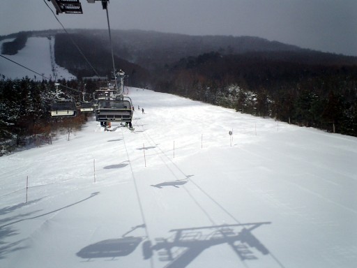 んで、人は少なめリフト待ちは最大でも5分くらい。一番上のリフトは動いているらしく、2本目