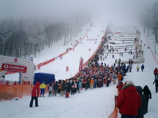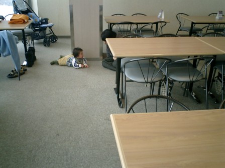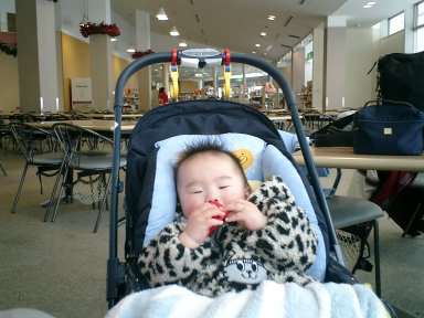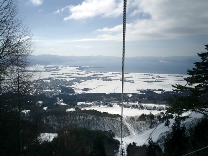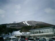 分ロープウェー始発かと思ったら8時に始発が出て行きました。改札の一番前に陣取っていた んだけど松っちゃんがトイレに行っていて次のに乗ることに。ロープウェイが降りてきたが途中 で止まってしまいました。停電だったそうです。先のに乗ってなくてよかった。上に行ってもリフト はまだ乗れなかったし、並んでなかったから一緒だった。