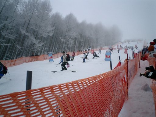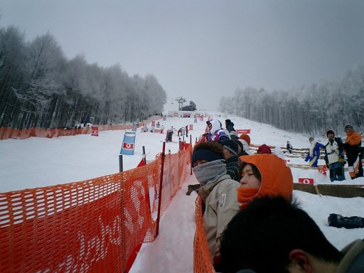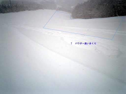 かな〜 と思ったけど何も残ってなかった...頑張って作ろうとしたけど1人じゃとても無理。し ばらくして現われた猪中2人つかまえてイーストのまんなかくらいにライン作り始めました。しか ーしみんなデラかけてくので仕方なく自分らでコース規制。(パトさんすごーくゴメンナサイ)