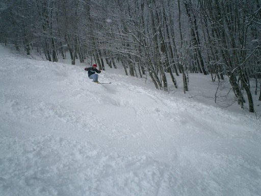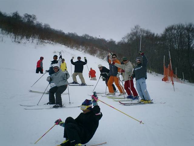 ![]() だしフラット練習したかったし猪苗代に行きました。 前日忘年会でのんだくれになって2時ごろ寝たんだけどちゃんと朝一に間に合うように起きれ ました。しかーしアタマ ガンガン痛いです。 猪苗代(ミネロ)駐車場に8時チョット前に到着。くもってます。駐車場で特命記者さんと合流。ミ ネロクワッドは一番乗り。縦ミゾを2本ほど味わってから 二日酔いのサルでもわかる基礎講 座を特命記者さんから3、4本受けました。とってもわかりやすかったです。アタマの中が飽和 状態になりかけでしたが滑ってるうちにわかってきました。うまく伝えれないですが簡単に言うと スキーってすごい。スキーって楽しい。今までのターンは何だったんだ? といったところでしょ うか?フラットが楽しくて楽しくて仕方ありません!!!特命記者さんアリガトウ!!! さて、今日の状況を... 天気はくもりです。たまに雨が降ってきます。シクシク。雨の中での スキーなんてひさびさ〜。一応我慢できるくらいの雨です。 赤埴は滑れませんがハニラー数名が集合。コース脇にハニラーががコブを作って、飛ぶぞー!楽しいぞー。 すぐに草などが出てきてしまいましたけど。 ラスト1本のときに小さい子(小学生2,3年位かな?)がコース脇で転んでなんか痛そうにして います。スキーがはずれて1本は雪に突き刺さっててすごく激しい転び方をしたみたい。聞いて みると腕がとっても痛い と。腕動かせることができるので折れては無いようだけど親がもう下 に滑っていってしまった ということでおんぶして下まで下ろすことにしました。特命記者さん、ま しゃるさん、まーさんにスキー、ストックなどを持ってもらい オリャ! と初めてのおんぶ滑り。 滑り出して仰天!!加速が全然違う!ターンまともにできん! おんぶしてる子に 大丈夫? と何回か問い掛けたけど自分に対する問いかけだったりする... 転ばなくてよかった。セン ターハウス前で無事お父さんを発見。ホントよかった。 いいことしたから今回の宝くじ 億単位の当選 確実? ・ゴーグルの顔にあたるとこの生地、劣化してボロボロ取れてきた...買い替え時期だ... ![]()