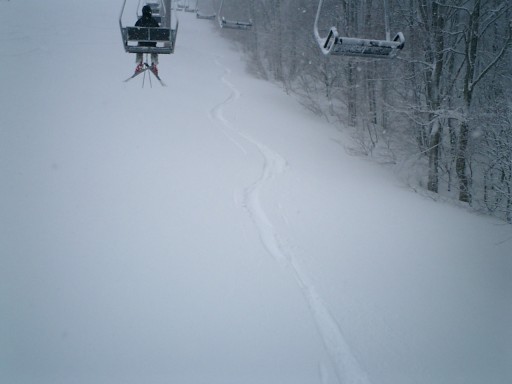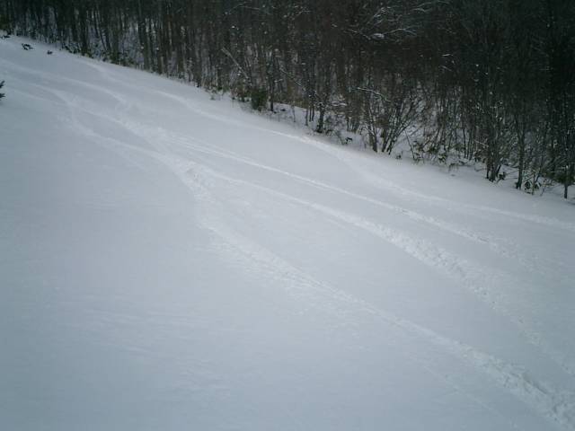 積雪はリフト降り場の圧雪してないところで60cm位。リフト脇の新雪を2人で荒らしてきました。