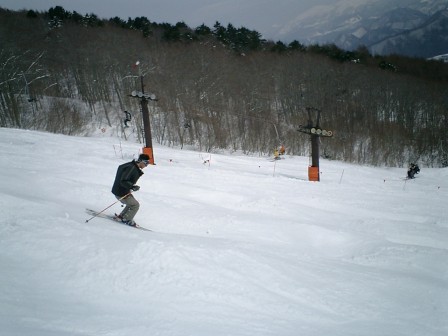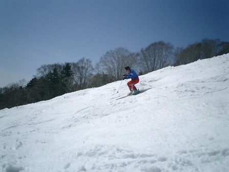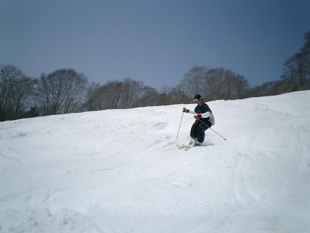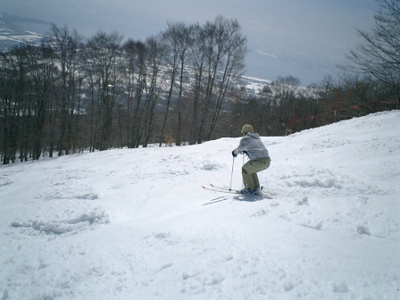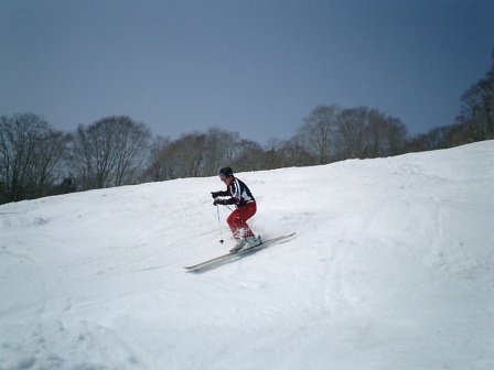 松ちゃんはカービングで大回り切れまくってました。やっぱりああいうバーンはしゃもじスキーが