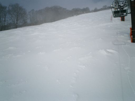 リフトに向けて滑ってくところ)を1本だけ食う。結構深かった。もったいない事をしたなぁ。