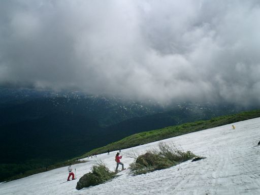 ![]() 高速も前回同様笹谷峠のみ利用。 7時過ぎに駐車場に着いた頃は日差しも出ていて、暑くなりそうだなぁと思っていたが、1回寝 て起きたら雨がザーザー降ってきた...空も暗く こりゃ午前中ずっと雨かな? とあきらめた けど9時前には晴れてきた。ヨカッタよ〜。 特命記者さんと合流し、Tバーに到着するも、結構な霧で視界はあまりよくない。たまに視界が よくなっても5分も持たず。 Tバー脇のラインを成長させながら滑ったが、途中ピッチがとっても細かいところがあり、抑え ることができない私ははじかれてばかり。通しで滑れたのは1本のみ。カナシー... ちなみに 特命記者さんはほぼ毎回通しで滑ってました。 昼ご飯を姥山頂付近で食べたんだけどとってもサムイ。G-SHOCKの温度計は8℃を表示して おりました。そのあとなにやら楽しげなアトラクションを見つけ、2人で羽ばたいてきました。 (写真をご覧下さい) 午後になるとラインも深くなり縦に攻めれますが、固いので疲れます。 そのうちフルバンプの方々が現れ、数本一緒に滑り、エア台飛ばせてもらいました。 14時過ぎにいつもの事ながら、太ももが攣り終了。 大斜面に行くと日差しがあって気温高い!雪も全然違う。別世界のよう。 人がいっぱいいたので前回よりやる気のある滑りをして今シーズンは終了。 大斜面で少し攻めたのが悪かったか、駐車場に戻る下り坂で太もも攣る... すんごく攣る...しばらく動けなくなった... 帰り、寒河江から高速乗るが、ETCゲートが開かない。(前の車) 5分ほど待って前の車通過したが、そのあと係員の言葉。 「 ETCですか? 」 当たり前じゃぁー! ETCか左ハンドル車かしか通らんレーンじゃろー! 右ハンドル車に1人で乗ってんの見えるじゃろー! とりあえず、「あたりまえでしょ」 と言っておいた。 <今シーズン最後なので写真をいっぱい撮った> Tバー脇のコブを滑る 視界不良 たまに視界良好 楽しいアトラクション 飛び出すときの視界 飛び出せ青春 フルバンプ様エア台作成中 大斜面は晴れていた模様 大斜面のコブ 月山 楽しかったー! おまけ 明日の天気が気になって仕事に支障がで出そうである。(まあ出ないけど) 天気予報はあまり信じれないので前日カッパを買う。 もんもんとしてきっとあまり寝れないと思い早めに寝る。 当日 予想通りAM2時半に目が覚める。 もんもんとしてではなくて、暑かったらしい。うなされて起きたらものすごい汗をかいていた。 よって、AM2時50分に出発。さすがに4号線ほぼ車なし。 予定では白石−寒河江を高速 だったけど、スイスイいけるので笹谷峠のみ高速に変更。 名水館まで210km 3時間20分 なかなかだのう〜 朝風呂に入るがお湯が熱く、全身浸かれません! しばらく汗が止まらない。 姥沢駐車場に着いたけどなにやら天候はあやしげ。 ちょうどTバーのあたりがガスの中っぽい。 特命記者さんと コレなら大斜面の方がいいかも? と言ってたけどその後快晴となる。 コレでもかというくらいに晴れた!あーよかったよかった。 午前中はTバーが異常に混雑(ボードでうまく乗れない人が...)し、1本目なんぞは30分も待 った! そんな状態だったので特命記者さんと大会ラインの発掘、エア台の整備をする。 なかなか滑りやすい状態となり久々にエア入れて滑った。 でも満足のいくすべりは1本かな? エアもツイツイ、ツイスプ、スプとツイのシングルとバリエ ーションが少なく、物足りなくなってきた。やっぱヘリか? Tバーは午後になると人も少なくなり、2時半くらいからはグルグルチーム(特命記者さん、ちゃ うちゃうさん、宮ちゃん)の貸切となりました。 最後の大斜面、太ももは当然パンパンでかなりやる気のない滑りをして本日終了。 またしても快晴月山。よほど日程設定がいいんだな、自分。 駐車場に戻ると暑さで汗が止まらなくなりました。 あのうっとしいムシが数匹車内に侵入し、格闘しながら帰宅。 Tバー激込み 晴れ1 晴れ2 晴れ3 (湖面に猪苗代スキー場が映っててキレイだった) 赤埴はコブコブ。ほぼ全面。 でもいいラインはあまりなかったな。 雪はザケザケでまっすぐ行きなさいと言ってるようです。 今日は富山よりジョージが来埴。 吸収がいいんじゃない?半袖で寒くないんかい? やっぱ燃えるね!燃えたね! ミネロ最終日曜日ということで他にも常連の皆様方と一緒に滑ってとっても楽しかったです! 上手く撮れた?写真を数枚。 スタート地点で牽制しあう常連たち。 風邪治ったの?特命記者さん 朝一からハイペースで滑るアズハタさん 何度見てもいい景色 楽しかったけど今シーズン一番疲れた! 帰りにセンターハウスまで滑る間にももツッタ。 帰り見たけど第二には入ってなかった。もうシーズン終りなんですね.... 風生を圧雪車にのせ、ソリ遊びさせ赤埴入り。 1時間限定なので超ウルトラハイペースにて滑る。8分〜10分サイクルで4本か5本滑った。 雪は少しザケてきていたのでそれなりに攻めれた。スピード命だったので下半身バラバラだっ た気がする.. 赤埴にはたくさんの