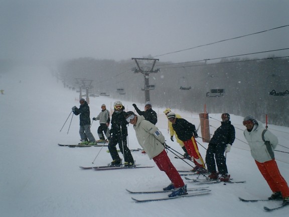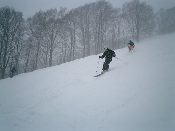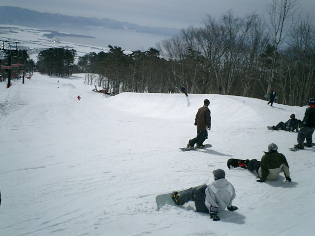 ![]() <今シーズンの目標> 2005.3.20(日) 猪苗代 晴れ 急遽引越しすることになりのんびりスキーになんていってられなくなった。 3/20 はスキー子供の日なので一家で、3/27 はミネロ最終日なので一人でじっくり と思ってたんだけど急遽引越しすることになりのんびりスキーになんていってられなくなった。 やっぱ最終日の3/27でしょ と思っていたけど、朝起きたら天気がいいので予定変更。 最近winter X GAME の見すぎで飛びたくてしょうがなかったので、赤埴に荷物置いて速攻中央 のパークへ。選択アイテムはハーフパイプ。気分はタナーホールでドロップINするも壁にビビリ リップ手前で飛んでしまう。 そんなことを3回くらい繰り返したが、ようやくビビリが無くなりリップから飛び出せるように。 着地もリップギリギリの所にビタ着できる様になり うほー 最高です。きもちいいです。 かなり飛び出してたと思われますがどうなんでしょうね。 時間が早くまだうまい人がいなかったので、一番飛べてたでしょう。(きっと) 着地もほぼ垂直の斜面に落ちるので衝撃ほとんど無し。 パイプってこんなに楽しかったのね。来シーズンからはまります。 パイプの下には小さいキッカーがあってミュートグラブの練習できるしずっとパークにいたかっ たけどやっぱ赤埴も滑りたいので戻った。 良いラインは3本くらい。そこそこ楽しめるけどパークがイイ... ということでカナさんと昼前にパークに舞い戻りひたすらパイプとミュートグラブの練習を繰り返 した。イヤー 楽しいね〜 もう抜けれないね〜 ハーフパイプ中毒だ。 午後からも赤埴滑ったけど、パイプのことで頭いっぱいの為あまり覚えてない。 みんなでヒューヒューいってたのは覚えてるけど... きっと上体はバラバラだったんだろう。バカ滑りしたから。 ラストも飛びたくて飛びたくて、コブの溝使ってツイとツイスプ飛んできた。 エア最高。 来シーズンからはフリースタイラー となる予定。(ホント?) 距離は短いけど楽しいよ! 今シーズンも皆さんアリガト! 2005.2.13(日) 猪苗代 晴 風生と2人でソリ遊びへ。 今日は赤埴なし! ゆっくり出発し高速で優雅に猪苗代へ。 トンネル抜けてスキー場見えたら、風生は「(スキー場)スッゴイおっきいね!」とすでに興奮気 味。第二駐車場からバスに乗るとバス好きな風生はさらに興奮。 レストランで場所取りしようとしたらエドぐゎーがいたので、「エロぐゎー」 と言わせようとしたが 恥ずかしいらしく言ってくれなった。 さあソリするぞと思ったら、先にキッズランドで遊びたいらしくしばらく滑り台等を満喫する。 やっとソリゲレンデについたが、雪が固まっててすごく登りにくい。ツルツル滑りながら一番上ま で来ると結構な斜度である。ビビリの風生は泣くんじゃないかと思ったが、「ごぉーごぉー」と滑 る気マンマン!1回滑ったらすぐに「もう一回」、次滑ったら「もっと」、次滑ったら「ムッチャ面白 いね!も一回」...延々と繰返される。父ちゃんは結構なトレーニングとなった。 途中アリババさんに会い、チョコをもらった風生。ソリが楽しすぎてもらったチョコを食べずに帰 りましたとさ。 赤埴は滑れなかったけど楽しい一日でした。 今度は抱っこでウエストかイースト滑ろかな。 昨日気温が高かったらしい。そして今日気温低め。 カリカリコブになってるのわかってたから、赤埴を1本様子見てパークに行こう と心に決めて たのにアズハタさんとカナさんと合流したため、そのまま滑りつづける。そのうちエドぐゎーも現 れたためもうパーク行く気無し。心が弱いこと... しかしエドぐゎーはハニの一番上の滑り出しでツイスターするし、ものすごいクイックいれて滑る し、刺激受けるわ〜。 赤埴は全面コブまでもう少し。カリカリじゃなければどのラインでも楽しめそう。 雪が降ってる上に、風が強くリフトはよく止まってた。寒かったわ。 抑えて滑るつもりだったけどたくさんのハニラーが現れたため、結構攻めてしまった。 でも腰が怖いからフルアタックじゃないです。今日の雪だとフルアタックしたら腰よりもヒザが逝 っちゃうかな。 1人で滑ってたら絶対午前中の早い時間で帰ってたな。 たくさんの人と滑れてよかったです。あんな硬いコブだったのにすんごく楽しかった〜! 今日は目標にはほど遠い滑りだったなぁ。 また後傾になってたはず。そんでもって上体が左ターンのとき傾いてた。足1本でコブ越えたの 数え切れないくらい... 硬いかな〜 と覗き込む ツイスターに包囲される アズハタ エドぐゎー デュアル たくさん集まりました コブ自体は良い形 ポールでもデュアル じっくり準備運動してから赤埴をまず偵察に行ったら、リフトのってる中毒者から赤埴経(ヒュー ヒュー)を唱えられたが、大人になった私はまだ滑りません。 なぜなら久しぶりにパークに行くのだ。赤埴1本目から攻めたら飛べないかも知れぬ! ということで赤埴を去り、第3に乗ろうとしたら、アルバイトをしながら係員をナンパ