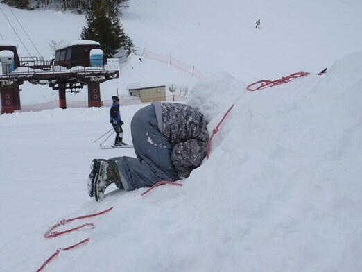 りんごを提示したふうきが、罰ゲーム。 スキー場のフェイスブックに写真が出るそうです。 午後はミネ1にはA川さんが作り始めたラインが楽し過ぎで、はりきりすぎ。 腰、明日大丈夫か? 宿で一時休憩し後でヨルミネロ。