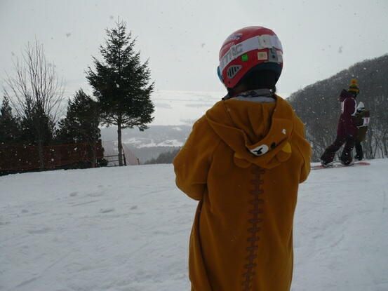 朝一は軽いパウダー 〜10cm堪能。 時間が経ってくると湿雪っぽくなるも、日が隠れるとしまった雪になっていい感じ。 午前中で終わりにしたけどフリーランを楽しみましたとさ。日焼けで顔イタイ。 奴ら着ぐるみで注目され、ご満悦