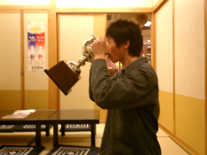 風生をのせて遊ぶのだ。12月15日(月) ETCカードが先週届き、やっと今日前割の申し込みができるようになった。 非常に長い道のりでアッタ。 12月10日(水) 一日中パソコンに向かう職場に移って2年近くになる。 視力低下と引き替えにブラインドタッチなんかがたまにできたりする。 指6本くらいしか使わないニセモノだけど... でもあまり嬉しくないな。 視力を返せ〜 12月7日(日) 風生がカメラをよこせってうるさい。 渡したら真似してちゃんとファインダーを覗く。 カワイイ〜 11月26(水)〜28(金) 出張で韓国へ。 初日 とりあえず宿泊ホテル周辺を歩き回る。 自販機に電話がついてる。変だ。 メシは刺し身を食う。刺し身にコチュジャンをつけて食うのが普通だそうで。 試してみるとコレが結構うまかったりする。 2日目 昨日結構歩いたので今日は地下鉄を使ってみることにする。 切符を買おうとするがカネを入れても戻ってくる。仕方なく窓口に行って買おうかと覚 悟を決めたが現地人が買うのをふと見ると、料金を先に押してる...あぁそういうこと ね。そう書いておけよ とおもふ。(英語で書いてあれば少しはわかるかと.) コレが問題の券売機。 さて、今日の夜メシは待望の焼肉。(ちなみに昼はサムゲタンを食べた) お約束のカルビ。ロース頼んだらステーキみたいの出てくる! 麺が長くてしかも切れない冷麺。左の缶はマッコルリ(濁り酒)。 全てうまい!うますぎ! ちなみに水はこんなコップで飲む。何だか冷酒みたいだ。 3日目 最後にまたカルビ食う。あーうまい。 昇天.. 一緒に出てくるキムチとかがまたうまいんだなぁ。 ※ちゃんと仕事はしてきた 11月21日(金)〜24日(月) 友人の結婚式があるため、富山に帰省。 金曜に仕事終わってから出発。天気が大荒れで日本海沿いの道は暴風雨で前見えません。 怖いから高速降りる。はよ通行止めにせんかい! 帰りに家の近くで採れた なめこ をもらう。ウチに帰ってからみそ汁にする。スゲェウメェ!天 然のにおい、味である。懐かしい〜。 11月18日(火) ETCを取り付ける。 一体型で安いのがあったけど 盗難して下さい といってるようなものなので分離型のちょっと 古いモデルのにする。 本体¥18,800也 あとはカード(ニ○ス)待ち。ロードサービス付きのにしたんだけど、ちゃんと対応してくれるの か? 年会費¥1,750 でJ○Fに入るようなものってどっかに書いてあったから選んでみた けどね。 ウイルス対策ソフトをアップグレードする。WEBがサクサク表示される。リアルタイム検索なっ てんのか? 11月1日(土) 3本のみスタッドレスタイヤに交換する。 というのも 火曜日の会社帰り道、リアタイヤ付近でカラカラと嫌な音が。 ウチに帰ってみると シュー と無情な音。 次の日早起きして1本だけスタッドレスに替える。 10月の早朝にスタッドレスに交換する人。見た人はさぞかし不思議がってただろうに。 10月19日(日) 風生が朝6時前に 腹減った泣き で起きたため、ついでに紅葉見に行ってきた。 裏磐梯から無料になったスカイバレーを通って白布−米沢へ。 スカイバレー使うと天元台近い。でも雪降るようなときに通る道じゃないな。でも無料になった から閉鎖時期ってないのかな? ドリドリの後がいっぱい残ってたけどガードレールぶち破って 下に落ちてったような後はなかった。 一番早起きしたおぼっちゃんは車にのって5分で寝てた。何て奴だ! 米沢で昼まで時間つぶすのに何となく上杉神社によってみたら公園は広い、きれい、お土産屋 は試食だらけ でとってもよかった。ウチの近くにあったらいいのに。 能の舞台が展示してあった。 たのしそうな人1 たのしそうな人2 あーねむー。明日は 奴 普通に起きるんだろうな。 10月2日(木) ワゴンRバッテリーが上がる。 交換したばっかなのにナゼ? 事情徴収してみると風生が運転席に座って何かつけっぱなし にしてたらしい。ライトならピーピーうるさいからウインカーあたりか? 最近運転席に座るのが大好きなんだよな〜 ケーブル買ってきて無事エンジンかかる。 9月20日(土) バーベキューの季節到来。 が、猛烈に寒い! しかも小雨。 とりあえず腹いっぱい食った。食いすぎた。 ワゴンRのバッテリーが死亡。あーあ。 9月13日(土) 会社 猛烈に忙しいのに突然3連休となる。何を考えてるかわからん。大丈夫か? ということでどっか行こう! と、子供連れでも安心 みたいな宿を探したが当然みんな予約で いっぱい。しょうがないのでふらっと那須へ行こう となりました。 高速を使えば1時間かからない。うーん須賀川って便利。 前から気になっていたハンバーグを昼飯に食い(サンタフェってとこ)、りんどう湖ファミリー牧場 へ行く。HPで割引券を印刷し入場料と乗り物乗り放題¥2,500だったが、割引券がないと ¥4,300だそうで。それじゃ高すぎまっす! 乗馬コーナーがありとっても乗りたかったけど人が並んでてイヤじゃ。 風生は小さい電車、小さいバス、小さい船に初めて乗りご機嫌ですた。 帰り道にチーズガーデン? なるものに寄る。あまり